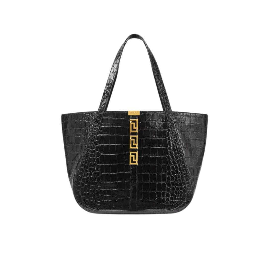 VERSACE CROC-EFFECT GRECA GODDESS LARGE TOTE BAG