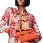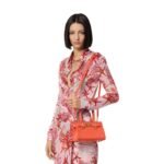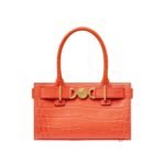 At first glance, the bag captivates with its striking silhouette. Compact yet spacious, it boasts a structured shape that maintains its form, making it both practical and visually pleasing. The exterior is adorned with a sumptuous croc-effect texture, adding a touch of glamour and intrigue to the design. This intricate texture not only enhances the bag’s aesthetic appeal but also lends it a sense of exclusivity.