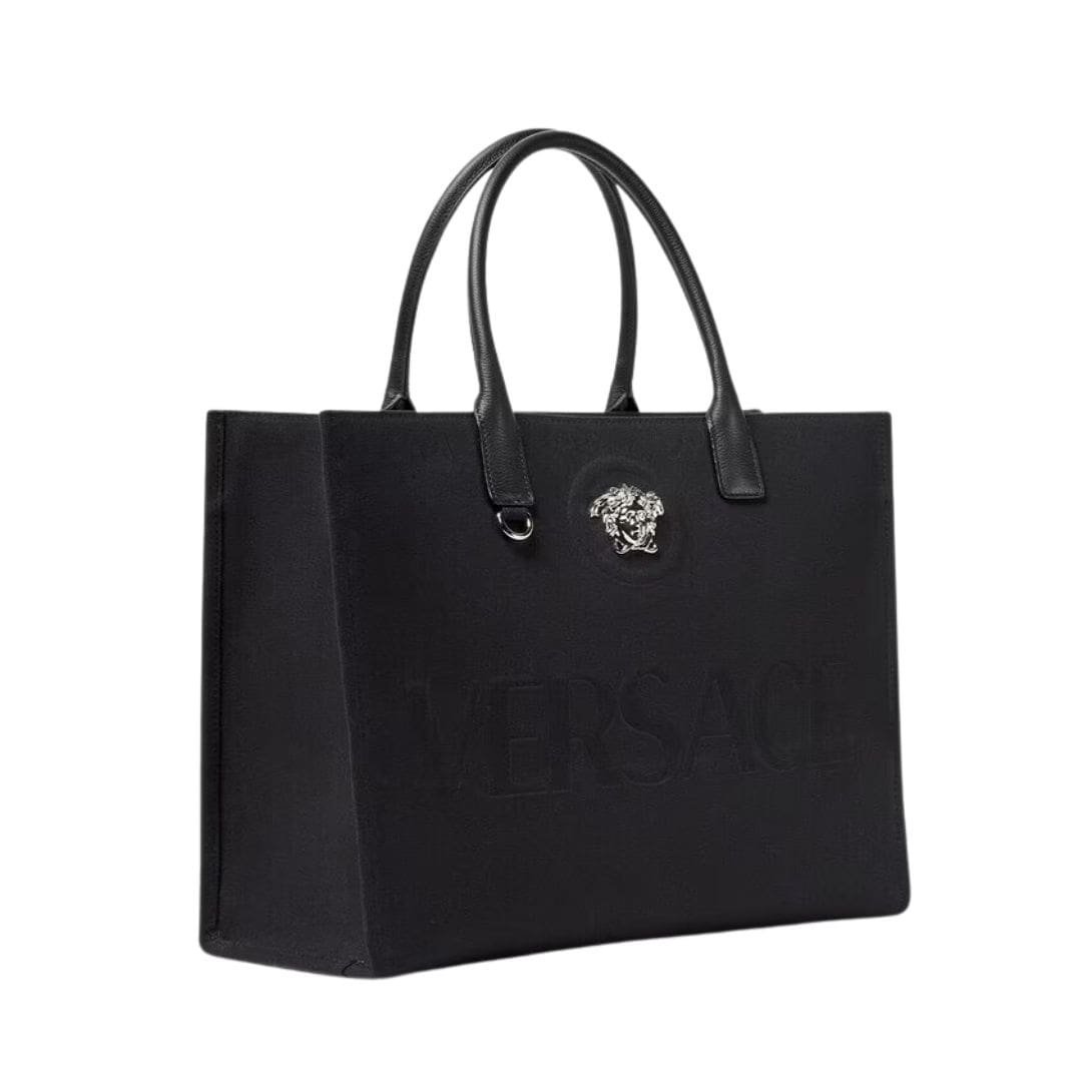 VERSACE LA MEDUSA CANVAS LARGE TOTE BAG