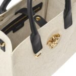 The attention to detail is evident in every aspect of the bag’s construction. From the supple leather trim to the gleaming gold-tone hardware, each element reflects Versace’s commitment to quality and luxury. The dual top handles are not only stylish but also practical, allowing for comfortable carrying whether in hand or on the forearm.