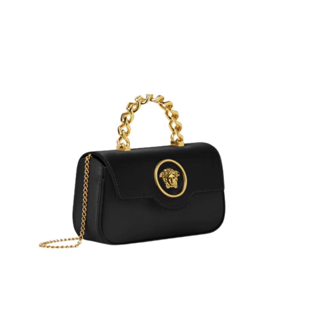 Versatility is another key feature of this exquisite accessory. Whether paired with a sophisticated evening ensemble or used to add a touch of glamour to casual attire, the Versace La Medusa Satin Mini Bag effortlessly transitions from day to night, making it a versatile addition to any wardrobe.