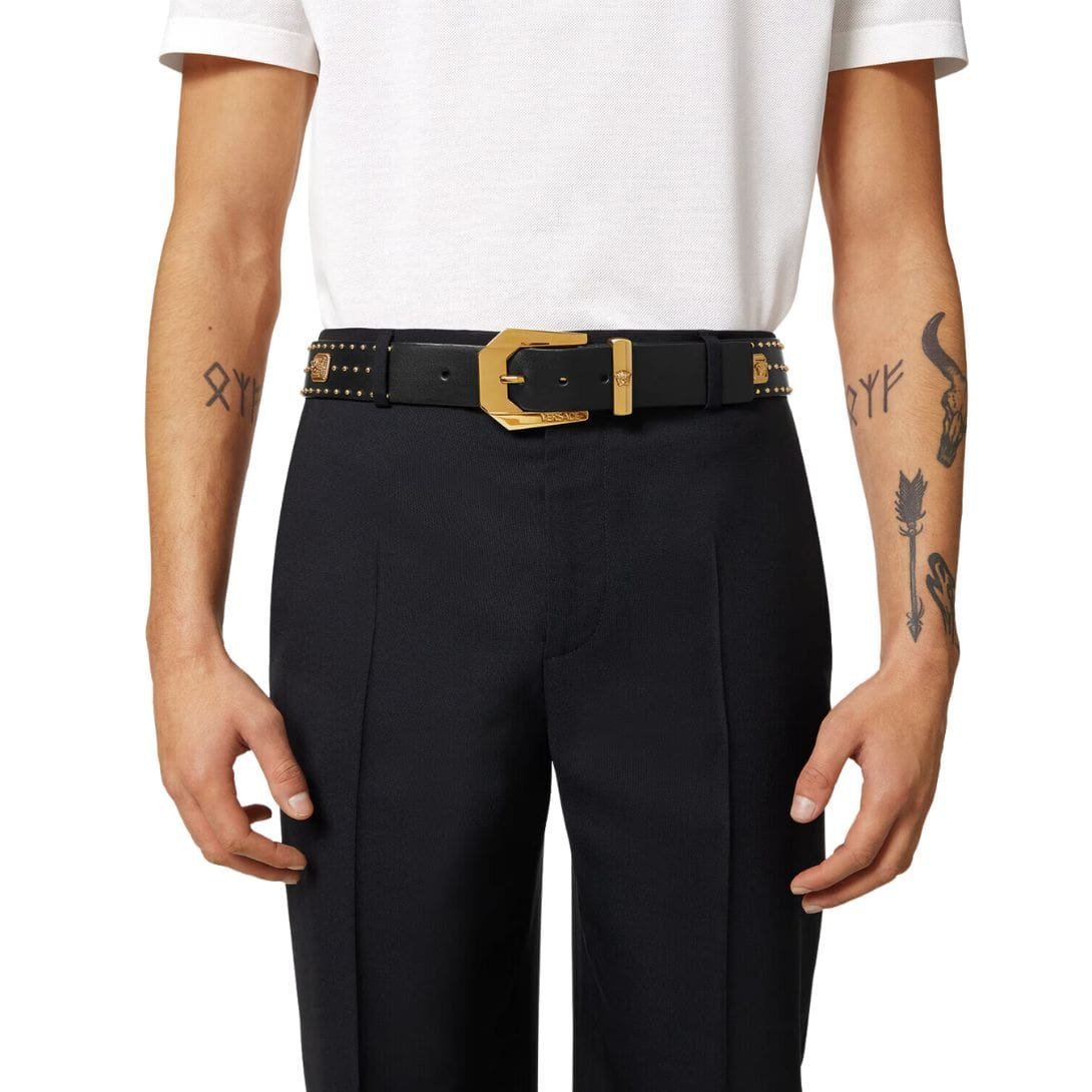 VERSACE MEDUSA HERITAGE STUDDED LEATHER belt 4 cm