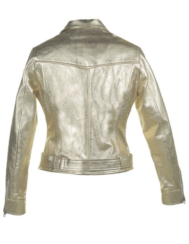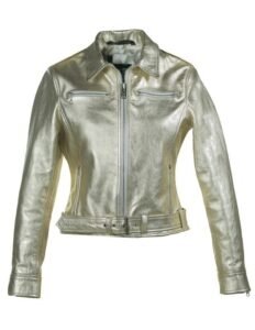 Women’s 20″ lightweight metallic cowhide collared cropped jacket satin lining.