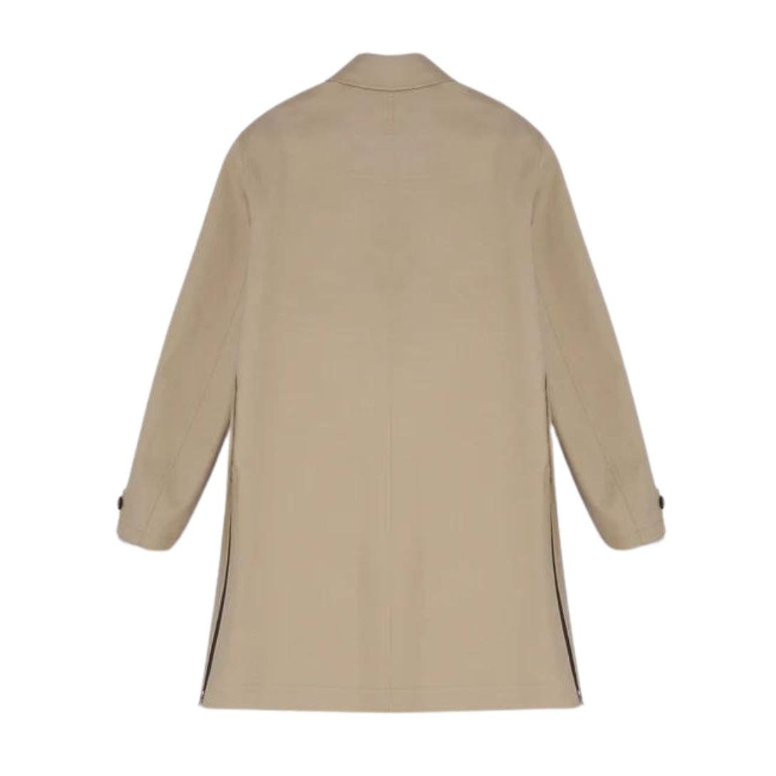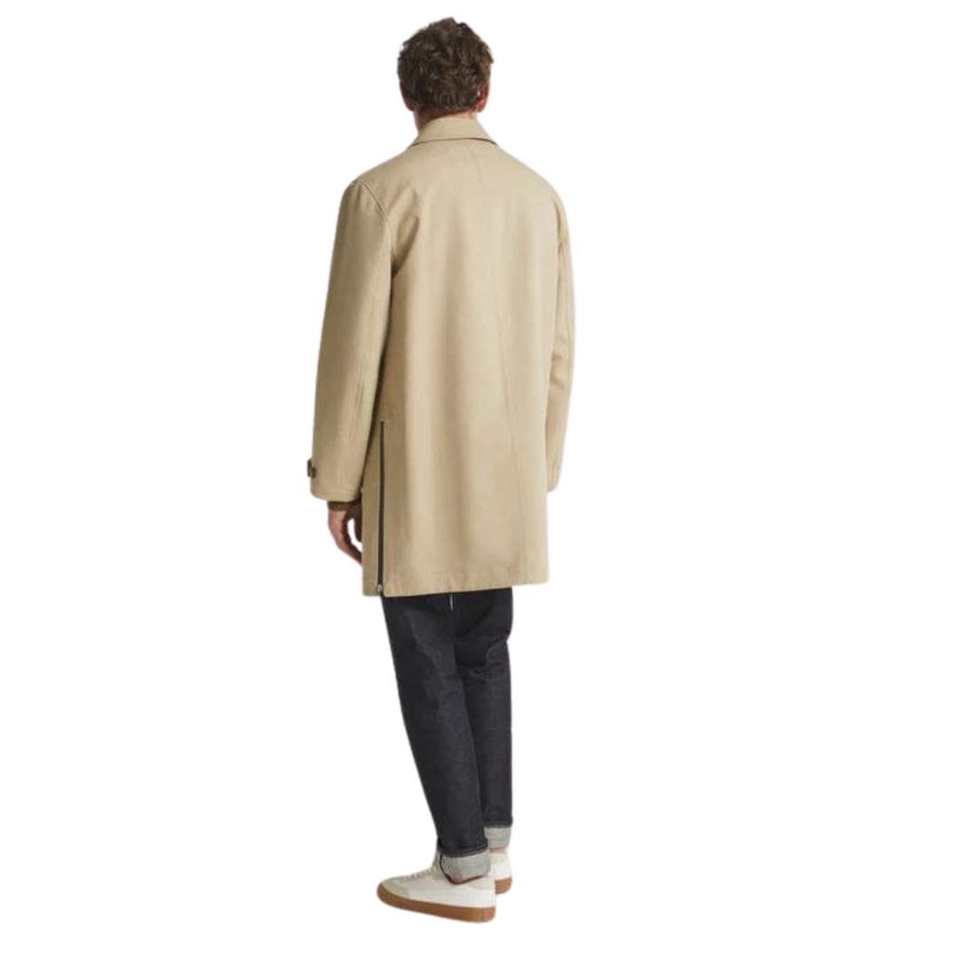 A contemporary interpretation of the classic raincoat, this Yves Salomon 3/4 Coat in Double-Faced Cotton and Water-Repellent Leather Details in water-repellent fabric multiplies the details for an effect that is both practical and stylistic. leather inserts slip under the collar and into the pockets, while the side slits can be closed with a zip. a snap tab covers the front zip, and the two side pockets also close with tone-on-tone snaps.