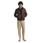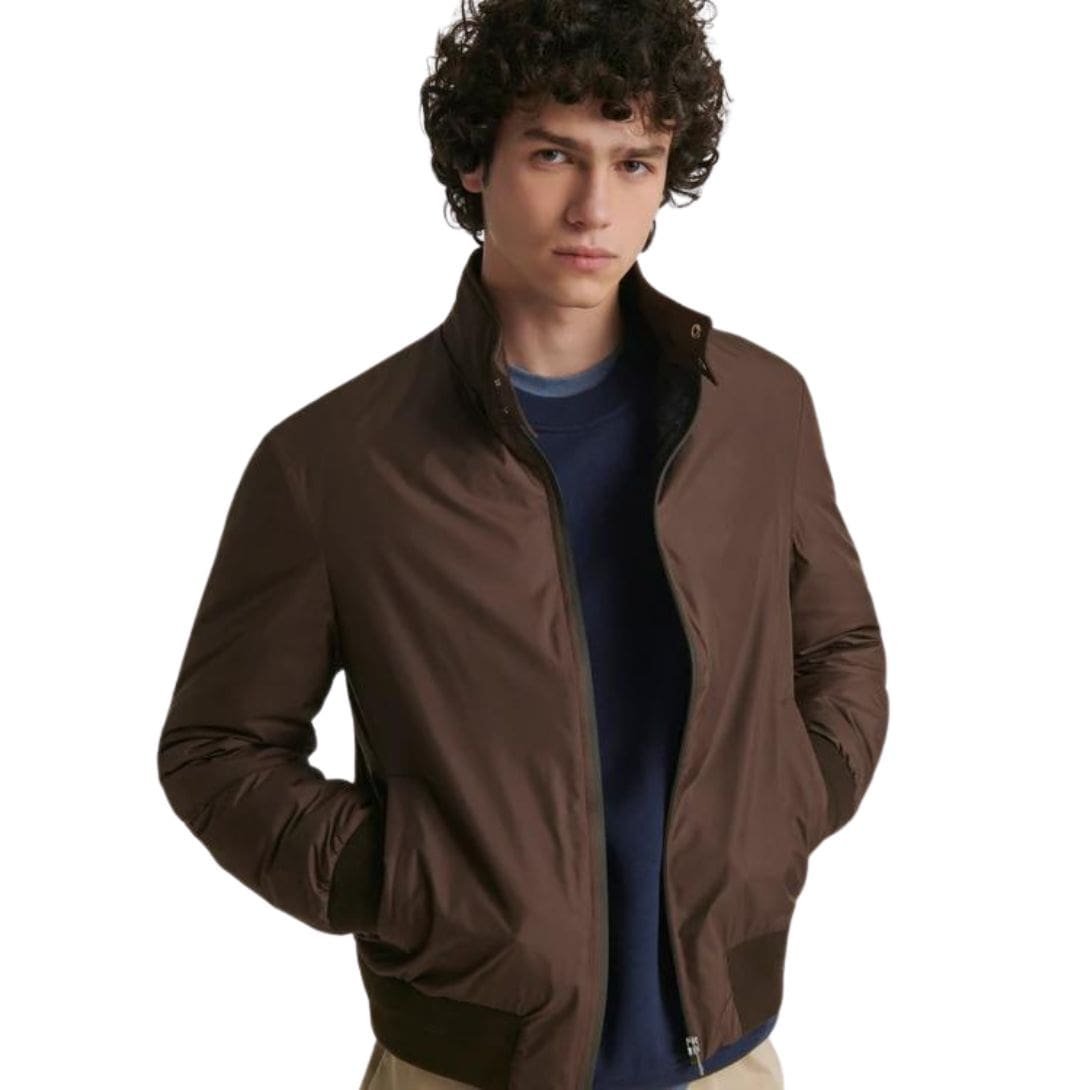 - Classic Baracuta collar with a zip closure ending at two studs